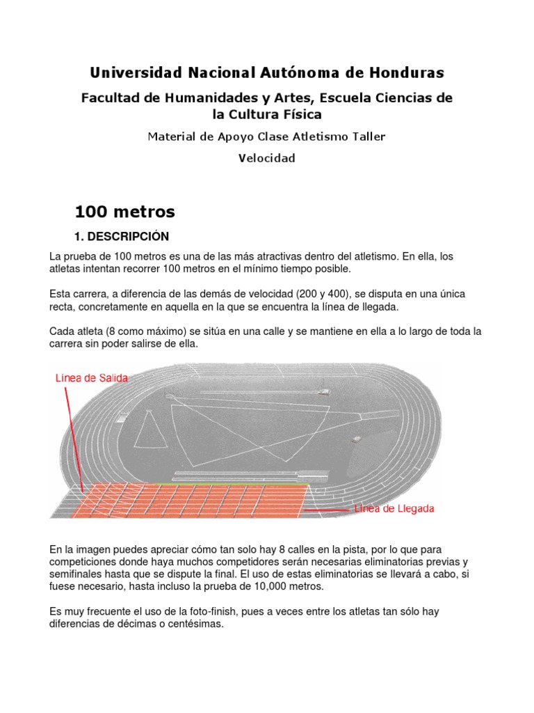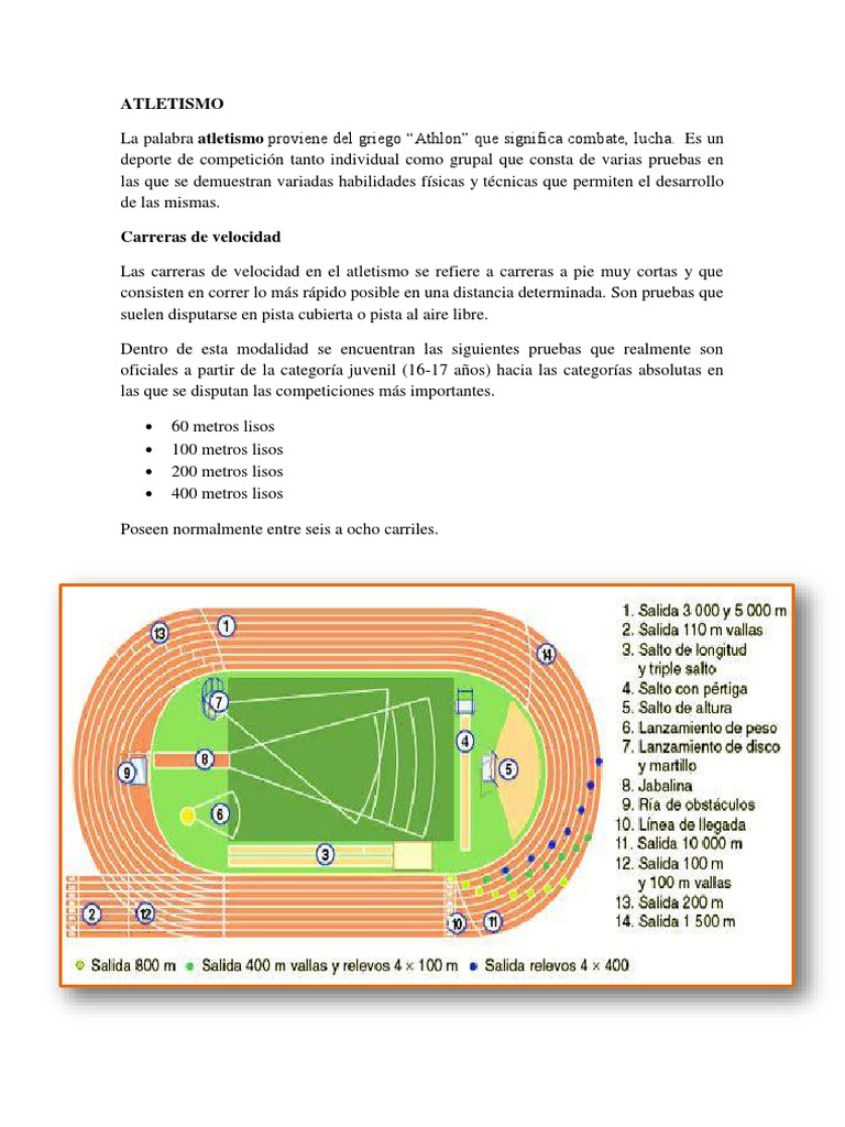 Descripción de la prueba 400 metros planos esta es la prueba de velocidad de mayor distancia, se realiza igual que la prueba de 200 metros pero esta vez, el competidor del carril numero 1 da una vuelta completa a la pista (400 metros), mientras que los demás para realizar la misma distancia deben adelantar su posición, parecido a lo que. Atletismo perímetro de la pista atlética 400 metros. Los 400 metros lisos o 400 metros planos es una prueba de velocidad mantenida del atletismo actual en la que los atletas corren por cada carril en que se divide la pista, situándose a distintas distancias, para así evitar que los competidores de los carriles exteriores recorran más metros que los de los carriles interiores. Hasta los 220 metros sostener la velocidad los últimos 120 metros hay pérdida de velocidad y es donde entra la resistencia como factor decisivo. Una vuelta a la pista.